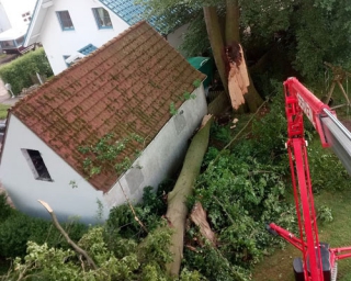 Stürme oder ein Blitzeinschlag können Bäume entwurzeln und umstürzen oder große Äste abrechen lassen. Wir entfernen umgestürzte Bäume von Ihrem Grundstück und fällen bei Bedarf umsturzgefährdete Bäume. Bei Problemfällungen sichern wir zum Schutz von Menschen, Tieren und Gebäuden die Gefahrenstelle und führen eine fachgerechte Fällung durch. Zusätzlich zerschneiden wir abgebrochene Äste und Bäume und nehmen die Entsorgung und den Abtransport für Sie vor.